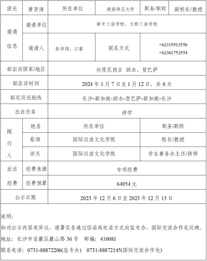 2023-12-06 17:14 来源:湖南师范大学新闻网 作者:湖南师范大学国际交流合作处 点击: