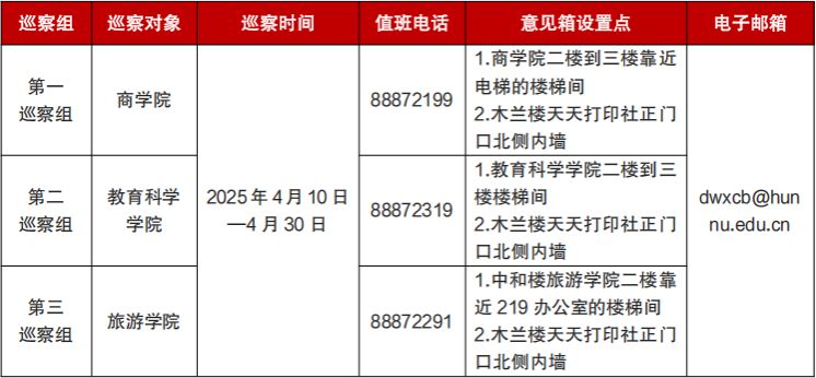 根据《中共湖南师范大学委员会巡察工作实施办法(试行)》有关规定,经学校党委研究,学校第六轮巡察决定对商学院、教育科学学院、旅游学院党委开展常规巡察。现将有关事项公告如下: