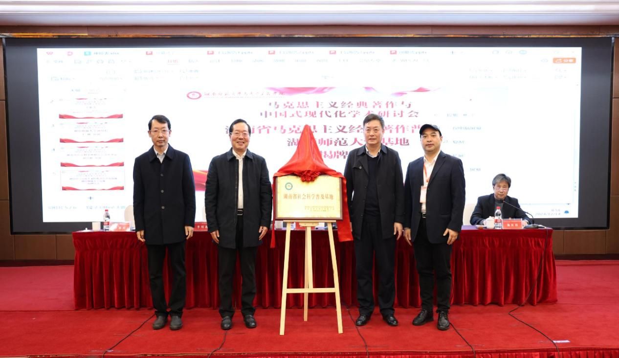 (供稿 马克思主义学院)12月14日,我校举行湖南省马克思主义经典著作宣传普及基地揭牌仪式暨马克思主义经典著作与中国式现代化学术研讨会。湖南省社科联党组书记胡代松、我校副校长王辉出席会议并为基地揭牌。开幕式由马克思主义学院党委书记陈红桂主持。