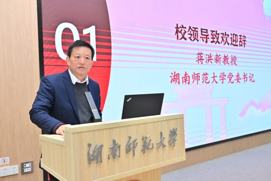 蒋洪新代表学校致欢迎辞。他介绍了学校的发展历程、基本概况及外国语学院学科建设成果。他指出,外国语学院始终秉持人才兴院、学科强院理念,对接“加强国际传播能力建设”等国家战略以及湖南省“三高四新”美好蓝图,致力于培养高层次国际化人才。他表示,希望此次学位评估助力学院学科发展与学位点内涵建设,进一步提高外语人才培养质量。