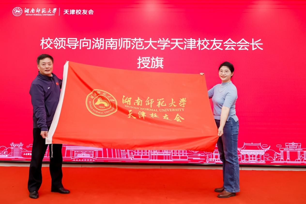 大会审议并通过了《湖南师范大学天津校友会组织机构建议名单》,并举行了授聘仪式。王辉向新任会长贾逸鸥授会旗,向赵国锋、贾逸鸥颁发聘书。校友总会·教育基金会秘书长黄丽萍向执行会长、副会长、秘书长颁发聘书并宣读《湖南师范大学天津校友会换届批复》文件。