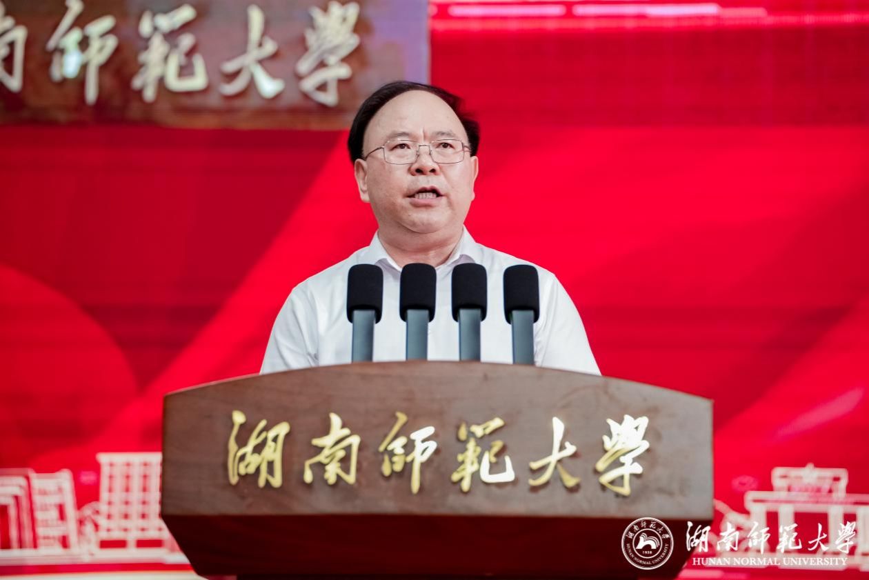 刘仲华校长讲话。他代表学校向圆满完成学业的2025届全体本科毕业生致以热烈祝贺,向所有关心、支持和帮助同学们成长成才的教职员工、亲友、校友和各界人士致以衷心感谢。他深情回顾了同学们在湖南师大与时代同频共振的成长轨迹。他强调,2025届毕业生们以青春为笔、奋斗为墨,共同交出了一份优异答卷。临别之际,他向毕业生们提出三点期望:一是在时代浪潮中找准自我,以“大我”格局担当时代使命,要始终将个人成长与国家发展、民族复兴紧密相连,在时代的浪潮中找准属于自己的航向,勇担时代使命,用青春和热血为国家、为社会贡献力量;二是在开拓创新中超越自我,以“超我”韧劲勇攀事业高峰,做“精勤”不辍的探索者、“创新”不止的实干家,不断改变自我、提升自我、超越自我;三是在磨炼考验中坚守自我,以“真我”姿态书写人生华章,要明辨是非、恪守底线,面临诱惑不动摇、面临挫折不退缩,始终保持定力与从容,守护透亮心灵,以赤诚之心活出无愧于时代的精彩人生。