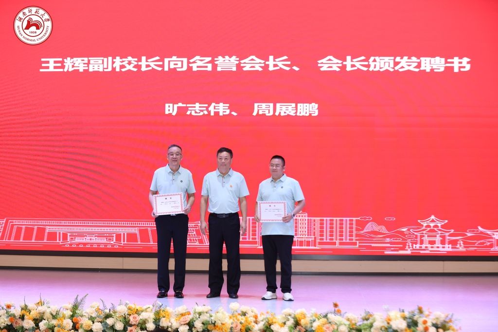 王辉向新当选会长授会旗,并向名誉会长、会长颁发了聘书。他表示,校友是大学的品牌与底气,也是推动学校发展的重要力量,母校与校友是天然的情感共同体、命运共同体;希望佛山校友会在周展鹏会长的带领下,成为连接母校与校友的桥梁,进一步加强校友之间的联系,促进资源共享和合作共赢。