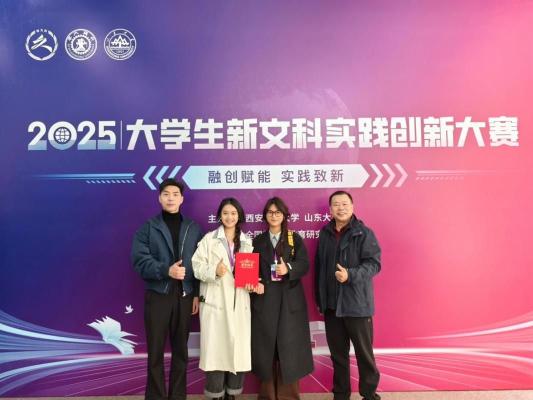 该赛事由教育部高等教育司指导,全国新文科教育研究中心主办,西安交通大学、山东大学承办。赛事坚持融创赋能、实践致新,鼓励学生打破学科专业壁垒,引导人才培养创新发展。本届大赛历时四个月,经过初赛和决赛网评赛,来自29个省(自治区、直辖市)、221所高校的454个项目晋级决赛现场赛进行展示和答辩。我校文学院参赛团队凭借扎实的研究基础、创新的项目设计和出色的现场表现,最终斩获金奖,展现了学校在新文科建设与实践创新人才培养方面的成效。