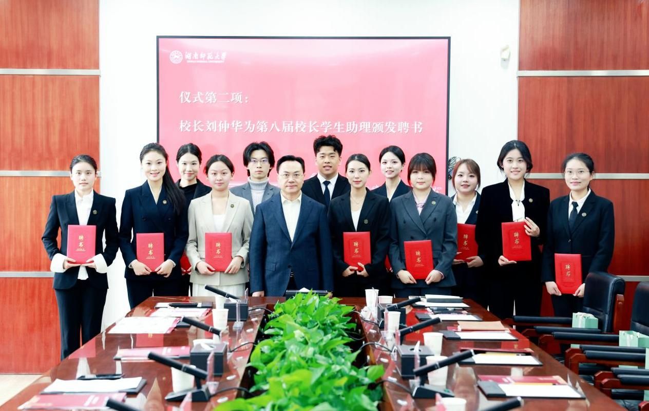 刘仲华为第八届校长学生助理颁发聘书。