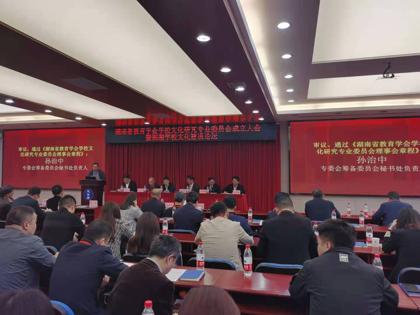 央广网长沙4月25日消息(记者 邓文辉)4月25日,湖南省教育学会学校文化研究专业委员会成立大会在长沙举行,大会同期还举行了湖湘学校文化建设论坛。来自中国教育学会、湖南省教育学会的领导、专家以及学校文化研究专业委员会理事会成员近两百人参加了成立大会和论坛。