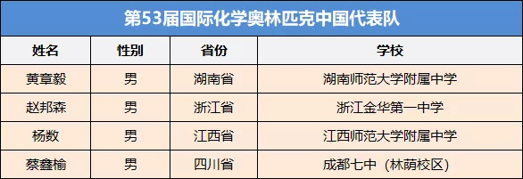 湖南日报·新湖南客户端4月26日讯(记者 余蓉)2021年国际化学奥林匹克中国代表队队员选拔赛已结束,出征国际奥赛的中国国家队名单今日出炉,4位选手分别来自湖南、浙江、江西、四川。其中,湖南师大附中18岁的高三学生黄章毅入选。目前,他已被保送北京大学。