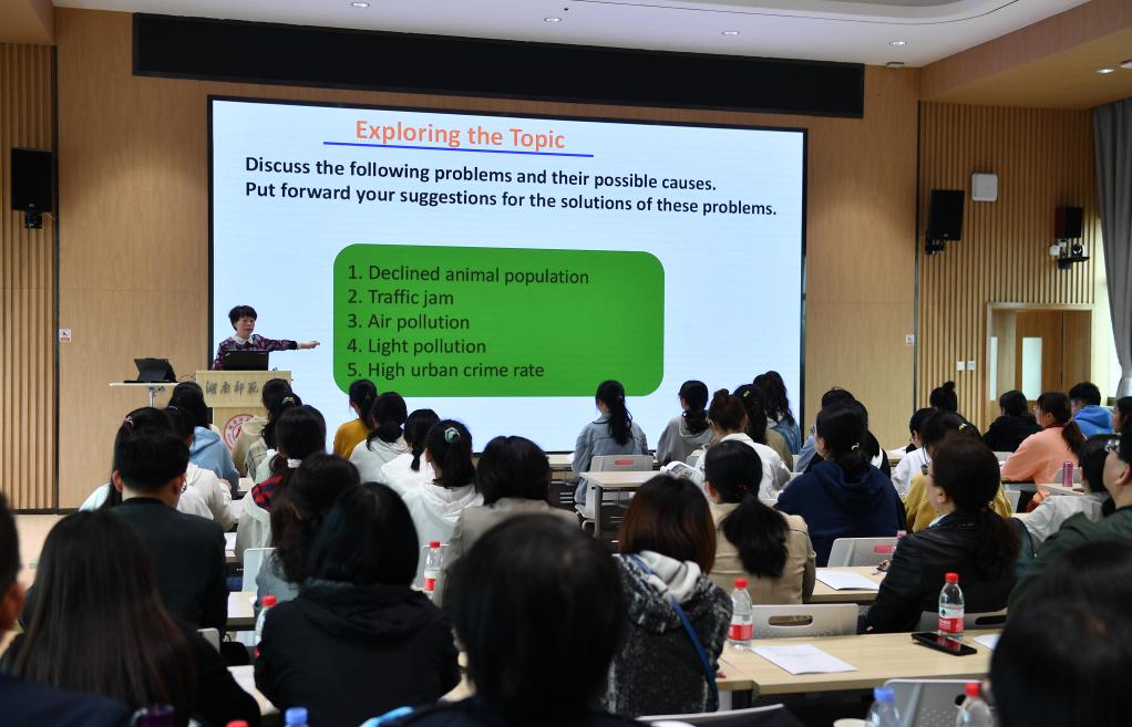 教育部英语教学指导分委员会秘书长、湖南师范大学外国语学院院长曾艳钰从历史沿革、学科发展、师资队伍、人才培养等方面介绍了学科的基本情况。与会嘉宾观看了外国语学院学科建设宣传片,并观摩了朱小舟老师的公开示范课,课程围绕《新时代核心英语教程》,紧扣《普通高等学校本科专业类教学质量国家标准(外国语言文学类)》和《普通高等学校本科外国语言文学类专业教学指南(上)——英语类专业教学指南》精神,注重学生英语综合运用能力的培养,旨在培养语言基本功扎实、人文素养深厚、国际视野广阔、跨文化能力强的英语类专业人才。
