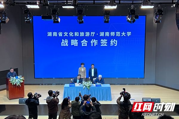 湖南省文化和旅游厅与湖南师范大学战略合作签约仪式现场。