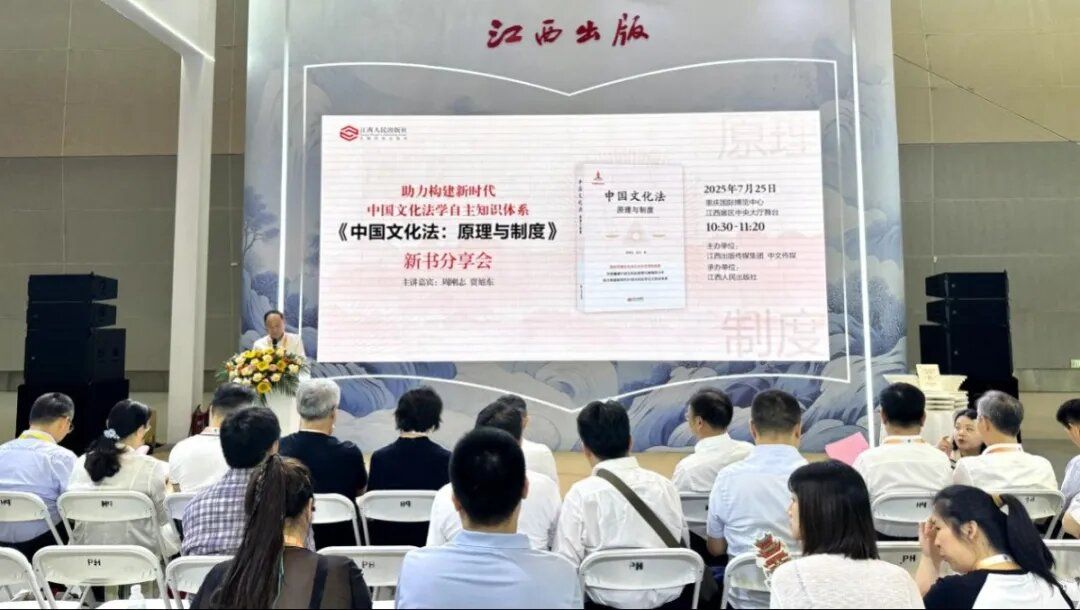 文化润心,法治安邦。2025年7月25日,由江西出版传媒集团、中文传媒主办,江西人民出版社承办的《中国文化法:原理与制度》新书分享会在第33届全国图书交易博览会主会场重庆国际博览中心举行。