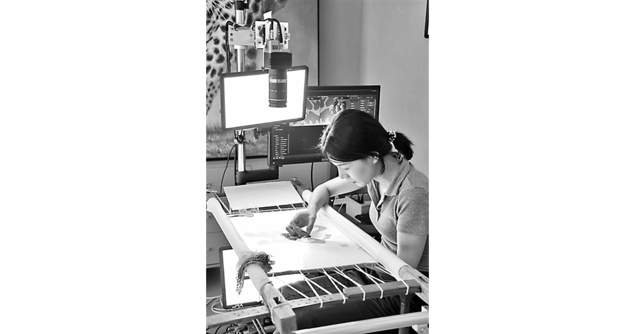 华体会平台全球首创湘绣大师针法原真采集系统实现了机器仿真刺绣量产。 学校供图