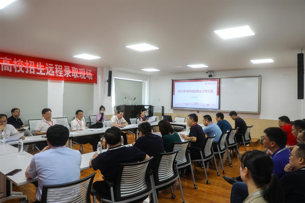 招生与就业指导处处长田野作2022年全日制本科招生就业工作汇报。他表示,我校学科门类齐全、培养理念先进、师资力量雄厚、特色优势鲜明等综合优势得到广大考生、家长和社会的高度认可,优质生源进一步提升,各项工作进展安全、平稳、顺利。