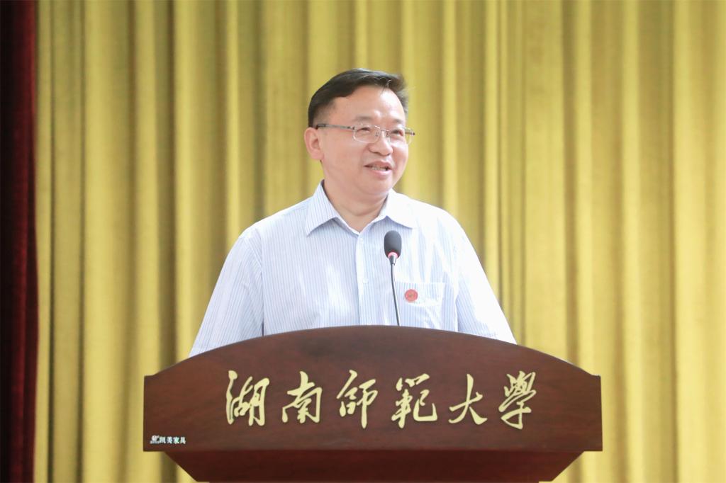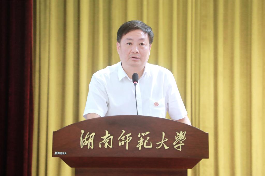 蒋洪新传达了习近平总书记在省部级主要领导干部专题研讨班上的重要讲话精神,要求全体党员干部要深刻领会习近平总书记重要讲话的政治意义、理论意义和实践意义,学习宣传和贯彻落实好习近平总书记重要讲话精神。他代表学校向长期以来辛勤工作的师生员工表示感谢,并对学校新学期各项工作做出部署:一是要抓主责,牢牢把握正确办学方向。各部门要站稳意识形态阵地,树立立体思维,牢牢掌握工作的主导权;要团结一心、齐心协力,争取在党建和思政相关项目指标上实现新突破,既彰显党建工作实效,也服务双一流建设。二是要守底线,确保学校安全稳定大局。要守住疫情防控底线,切实保障全体师生身体健康和生命安全;要守住安全生产底线,全方位强化校园安全工作;要守住校园稳定底线,着力解决师生重点关注的问题。三是要抢先机,乘势引领学校战略发展。学校要紧扣智慧校园和“双一流”建设,抢抓战略机遇,增强战略意识,提升斗争本领,以正确的战略策略应变局、育新机、开新局,持续推进学校各项事业发展。四是要强基础,不断优化内部治理结构。在推进学校内设机构改革工作上,要坚决贯彻落实省委工作部署,坚持稳妥有序,注重统筹协调推进各项工作;要继续保持优良作风,确保机构改革平稳顺利。五是要抓重点,着力打造和谐美丽校园。要科学规划校园建设,持续优化校园环境,拓展办学空间,解决师生诉求,以坚定的信念决心和昂扬的精神状态,投身美丽师大建设,以实际行动迎接党的二十大胜利召开。