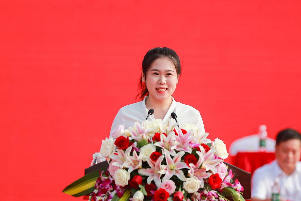 新闻与传播学院2019级本科生冯珂瑶作为老生代表发言。她结合自身在校任职情况和求学经历,与学弟学妹们分享自己成长路上的宝贵经验,并鼓励新生深入学习师大“仁爱精勤”的校训精神,勇于探索、不懈奋斗,不负师大好风光、不负青春之绚丽姿态。