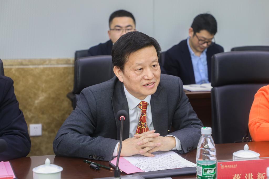 蒋洪新对张继青一行的到来表示热烈欢迎。他介绍了我校的建校历史、人才队伍等相关情况,从社会主义办学建校、人才队伍强校建校、大学共同体建校分享了新时代办好一个大学的基本要求。我校近年来在大批优秀人才的支撑下,在人才项目、学科建设、教学科研等方面工作都取得了重要突破。他强调,人才是办学建校工作的关键核心,要以一流人才培养一流学生,以一流人才建好一流大学,并围绕人才培养、人才选拔、服务保障提出了建议。
