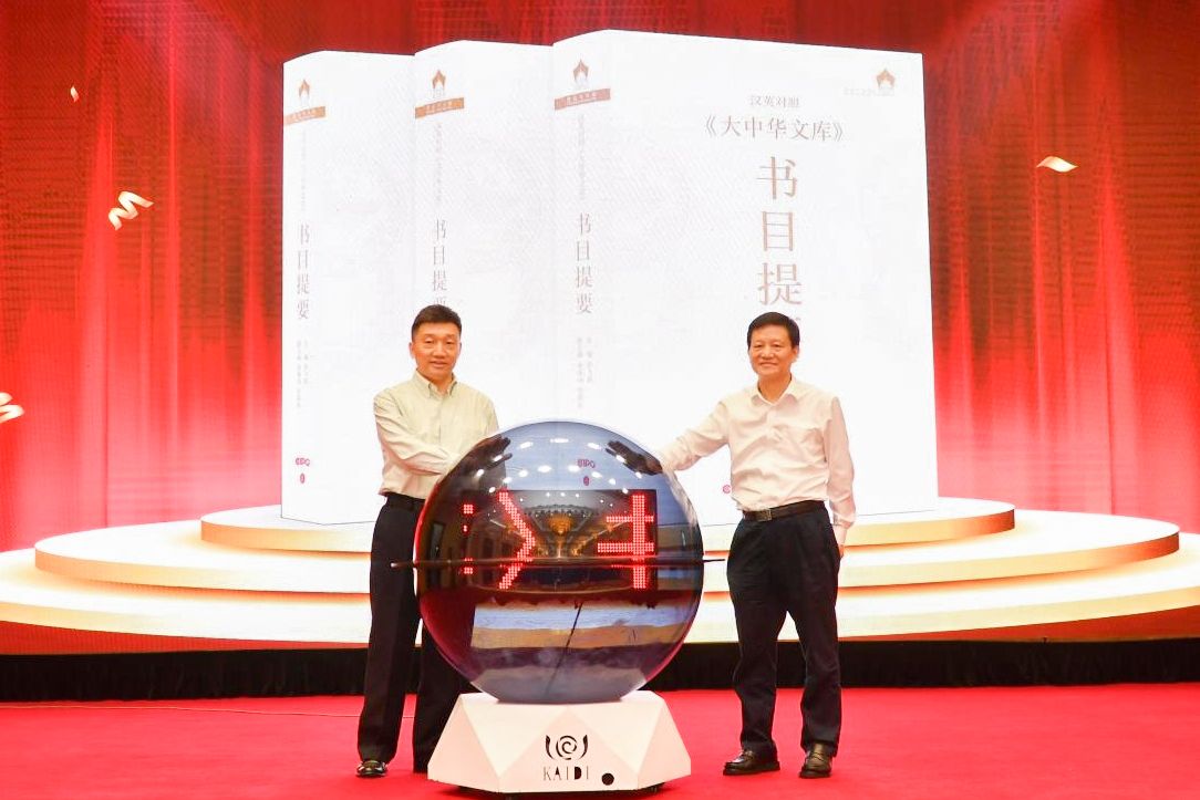 与会专家学者共同见证《汉英对照〈大中华文库〉书目提要》新书发布,于涛、蒋洪新共同为新书揭幕。