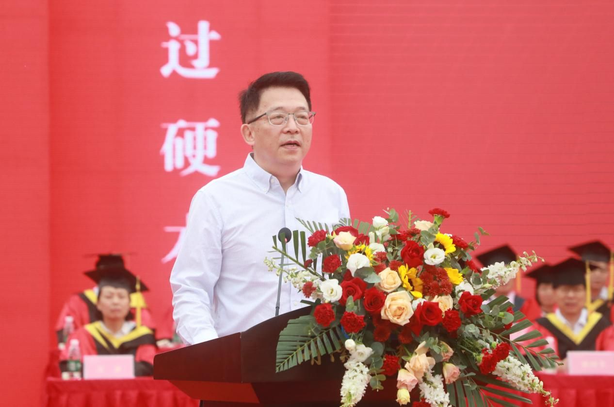 蒋洪新以“做青春的逐梦者”为题发表讲话。他代表学校向全体毕业生表示热烈祝贺,向所有关心、支持和帮助同学们成长成才的教职员工,亲友、校友和各界人士致以衷心感谢。他表示,同学们在师大的一千多个日日夜夜,与时代共奋进,与学校同发展,成为师大“辉煌、美丽和不朽”的风景。临别之际,他对毕业生提出三点希望:一是要胸怀“国之大者”,激扬青春梦想。爱国,是人世间最深层、最持久、最伟大的情感,希望大家以此为念,仰望星空,心存梦想,脚踏实地,善作善成,将爱国情、强国志、报国行融入青春梦想。二是要锤炼过硬本领,汇聚青春力量。博观而约取,厚积而薄发,希望大家继续保持对世界的好奇、对知识的渴求、对真理的探索,继续不断地提升自我、突破自我、成就自我,集聚起奔涌磅礴的青春力量。三是要勇于实干担当,书写青春华章。面对学业、事业与家庭的多重压力,可能少不了会委屈、困惑和不安,希望同学们少些抱怨,多一些调整和适应,心存一份感恩,保持一份热情,机遇总会眷顾那些正直、善良、且务实的人。