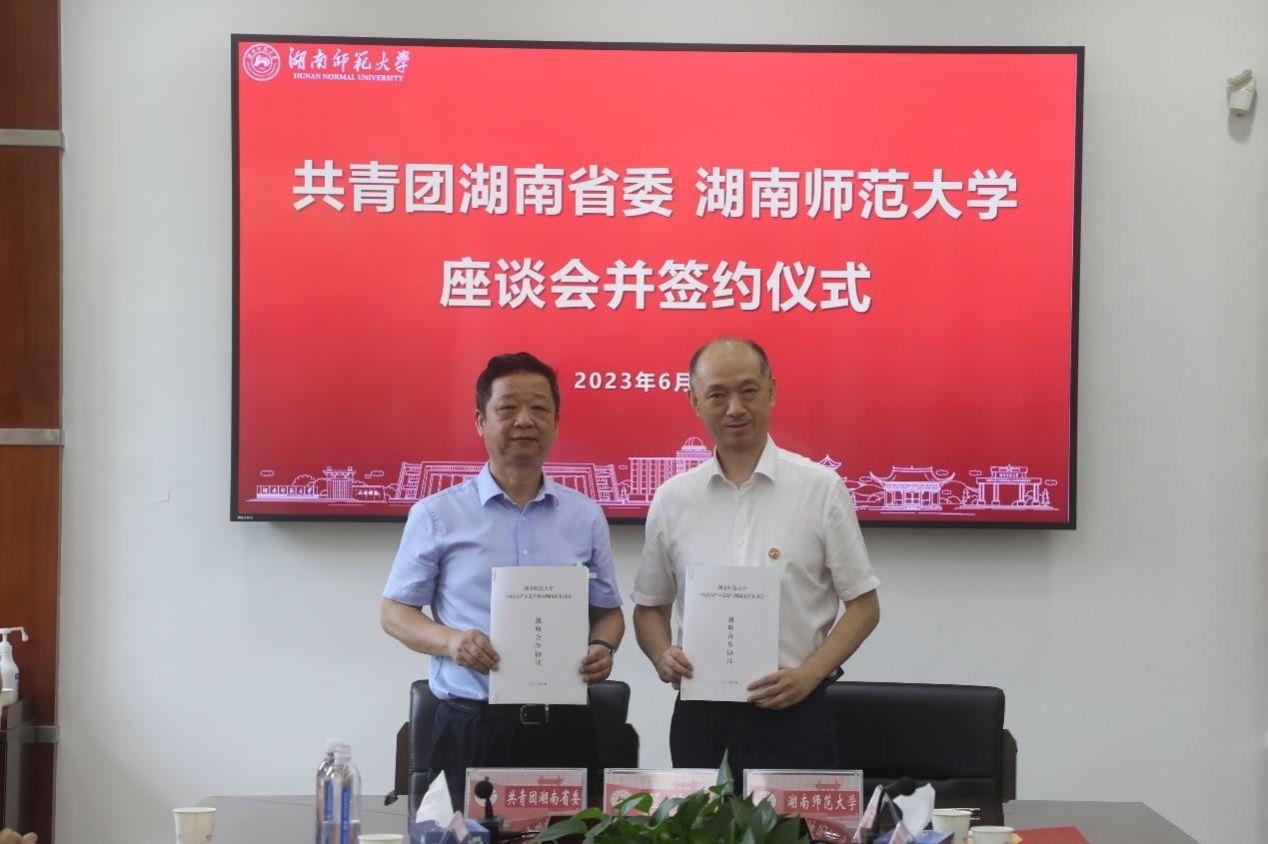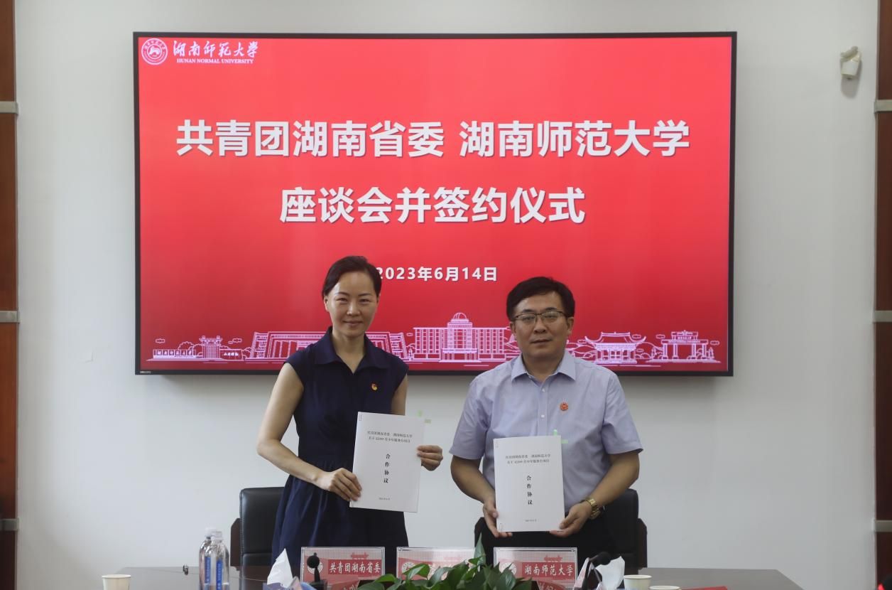 在座谈会上,张建军和杨震分别代表与会双方签署了团省委与湖南师范大学战略合作协议,省权益办专职副主任曾倩和我校学工部部长向发意共同签署了省未成年人权益保护委员会办公室与湖南师范大学心理健康教育与咨询中心合作协议。