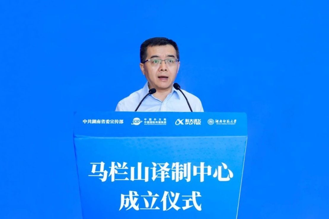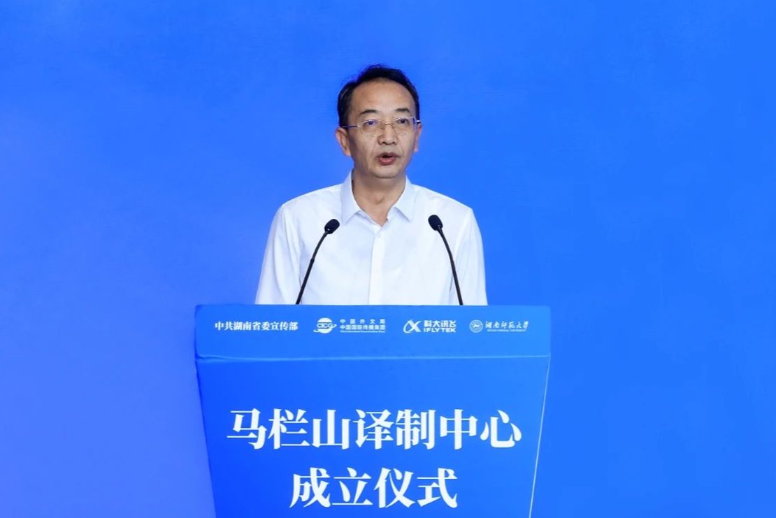 (供稿 外国语学院)7月30日,由中共湖南省委宣传部、中国外文局、科大讯飞股份有限公司、湖南师范大学共同筹建的马栏山译制中心成立仪式在湖南长沙举行。中国外文局局长、中国翻译协会会长杜占元,湖南省委常委、省委宣传部部长杨浩东,科大讯飞集团高级副总裁于继栋,我校党委书记、欧洲科学院院士蒋洪新出席并致辞。我校副校长潘安练代表学校签署战略合作协议,湖南省委宣传部分管日常工作的副部长卿立新主持致辞环节。