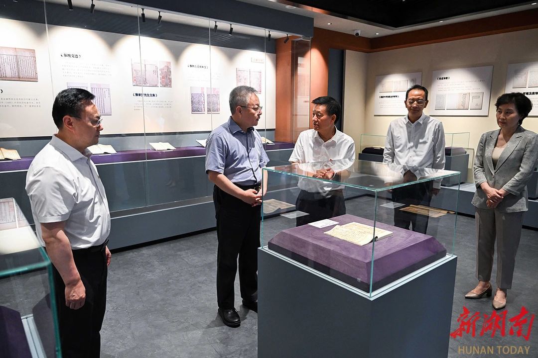 沈晓明来到我校博物馆、古籍室和历史文化学院,深入了解湖南古代瓷器、典藏古籍保护整理修复、文物检测技术与应用实验室建设等情况,听取了文博人才培养、学术研究、成果应用等情况介绍。