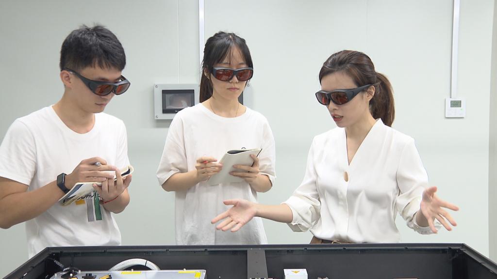 在量子精密测量与传感实验室,翟亚新教授正带领着学生们进行钛宝石飞秒超快激光光路调试,翟教授2017年从美国犹他大学物理系博士毕业,2018年加入美国国家可再生能源实验室从事博士后研究,去年她选择回国发展,面试了多家学校后,最终被湖南师范大学诚心打动,去年她以“潇湘学者”特聘教授身份入职湖南师范大学,还入选湖南省高层次海外人才项目。