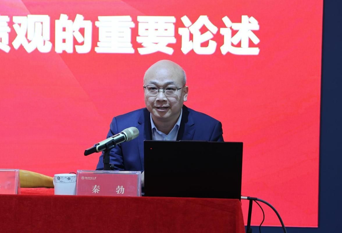 校党委副书记、校长刘仲华主持理论学习研讨会。中共湖南省委党校(湖南行政学院)秦勃教授以《习近平总书记关于树立和践行正确政绩观的重要论述》为题作专题辅导报告,从重大意义、丰富内容、实践要求等三个方面,对树立和践行正确政绩观作了全面阐释,深刻解答了“政绩为谁而树、树什么样的政绩、靠什么树政绩”的根本问题。